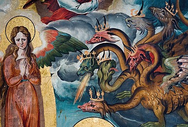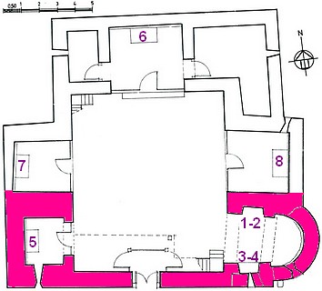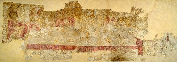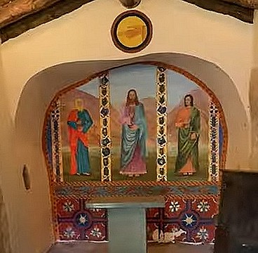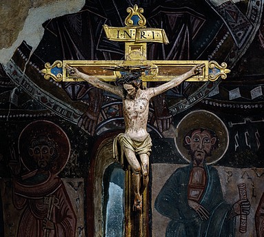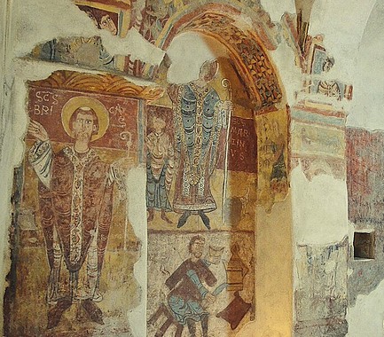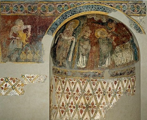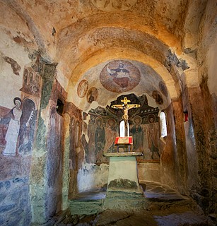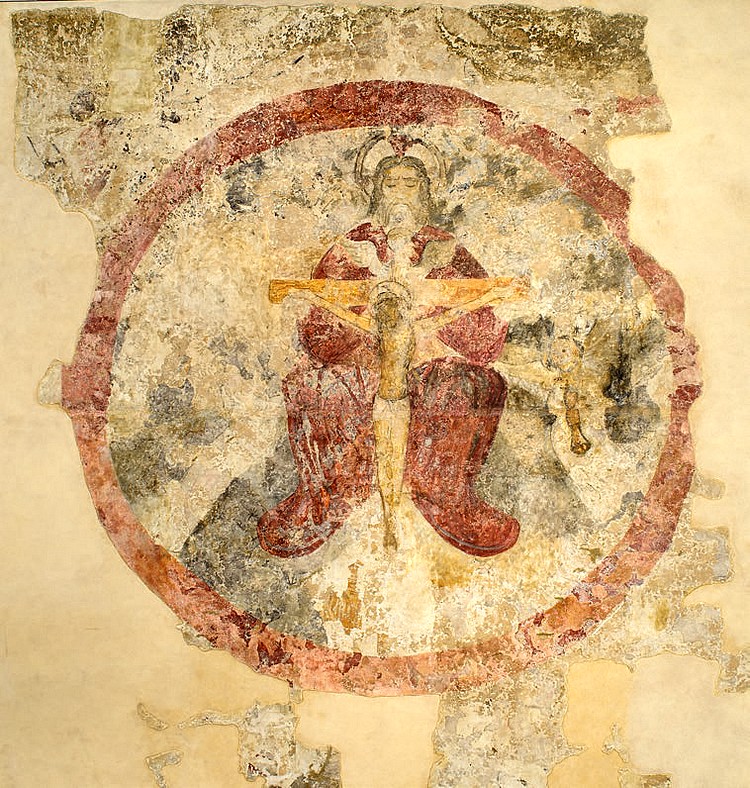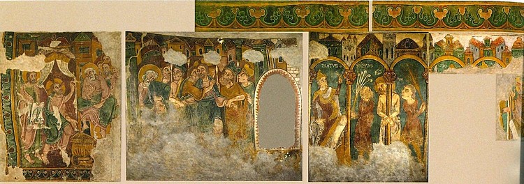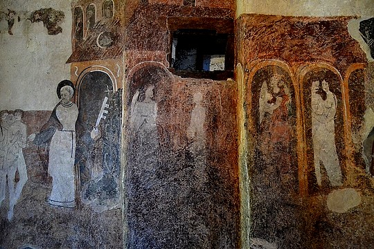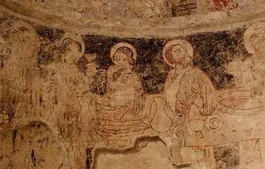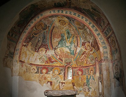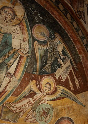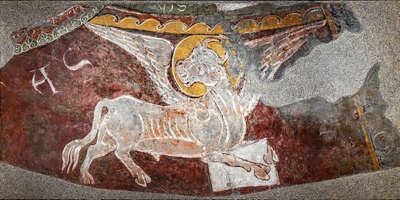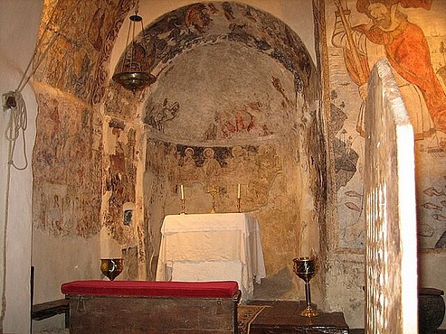 Az apszis legfontosabb freskóegyüttese a hagyományos Pantokrátor és az őt körülvevő tetramorf lehetett. Ebből az együttesből csak Szent Lukács alakja maradt meg, mint egy szárnyas bika, aki könyvet tart. Úgy tartják, hogy ezeknek a falfestményeknek nagy része megsemmisült a kivágás idején. Valójában ennek a kis töredéknek köszönhetően feltételezhetjük, mi lehetett az apszisban megjelenítve.