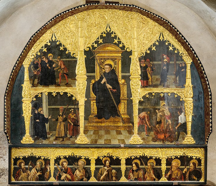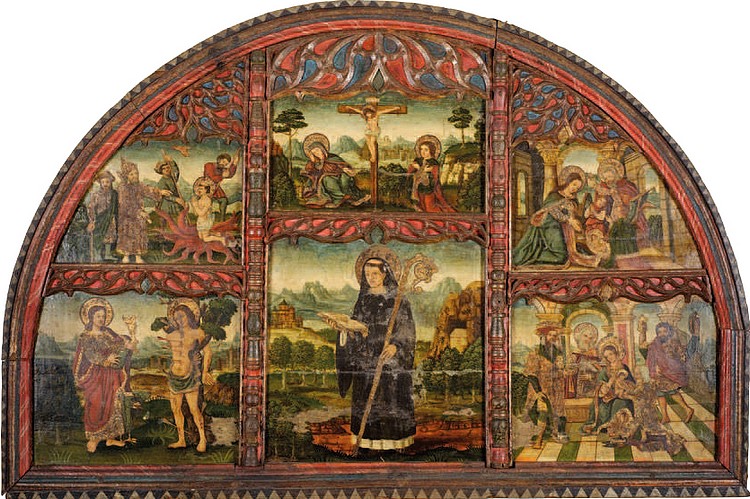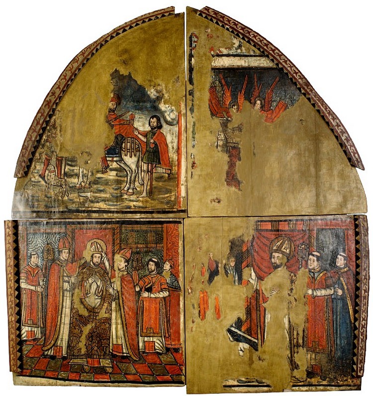 Az együttes húsz képből áll össze, valamint a sekrestyébe vezető nagyobb ajtó paneljével. Alul a predellán nyolc képen egészalakos festményeken a közösség kedvelt szentjei állnak: középen Szűz Mária és Szent János, akik a szenvedő Krisztust nézik, aki a sírban áll. Szent Sebestyén, Szent Rókus és Szent Jakab balfelől, és egy áldó pózban lévő püspök (talán Szent Márton) pedig jobboldalt, az ajtón Szent Péter, aki egy nagy kulcsot tart. A retablón elhelyezett jelenetek Szent Kristóf életének elmesélésére szolgálnak, kivéve a középső Kálváriát a csúcson, ahol Mária és Szent János ülnek és imádkoznak a kereszt tövében. Ez az egyik leggazdagabb ikonográfiai ciklus a szentnek Európa szerte szentelt ciklusok között, és talán egyedülálló, mivel ritka jeleneteket tartalmaz a koronázásról, a szent gyerekkoráról. Nyilvánvalóan vannak sokkal értékesebb ciklusok szigorúan művészeti szempontból – a reneszánsz művészet kedvelőinek valószínűleg Andrea Mantegna padovai Eremitani-ciklusa jut eszébe –, de nehéz találni olyan teljeskörűt, mint ez az andorrai.