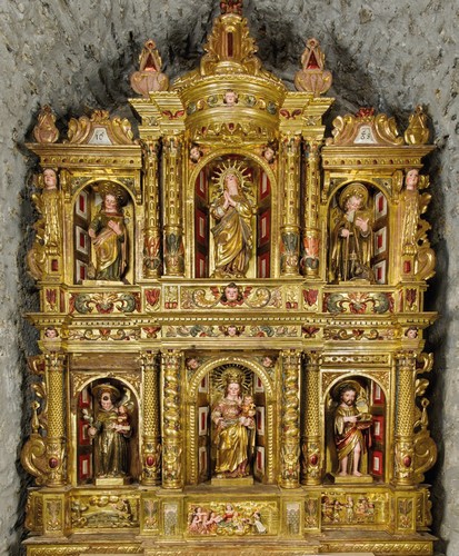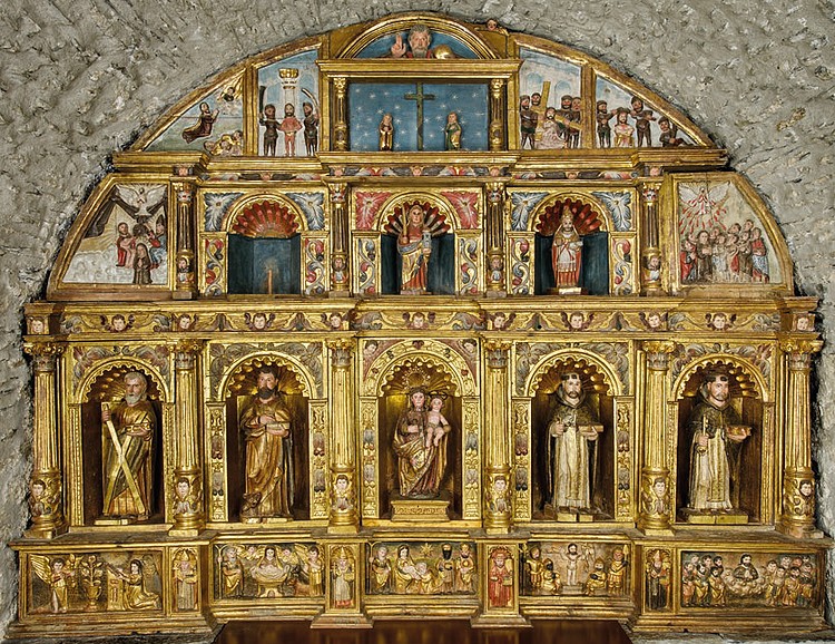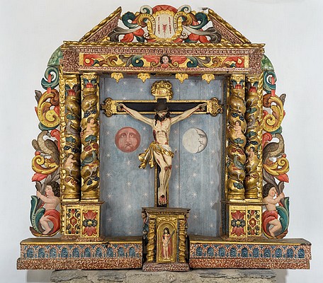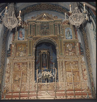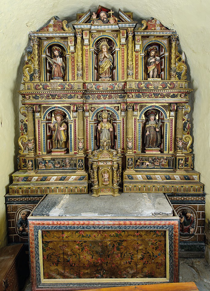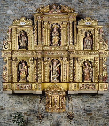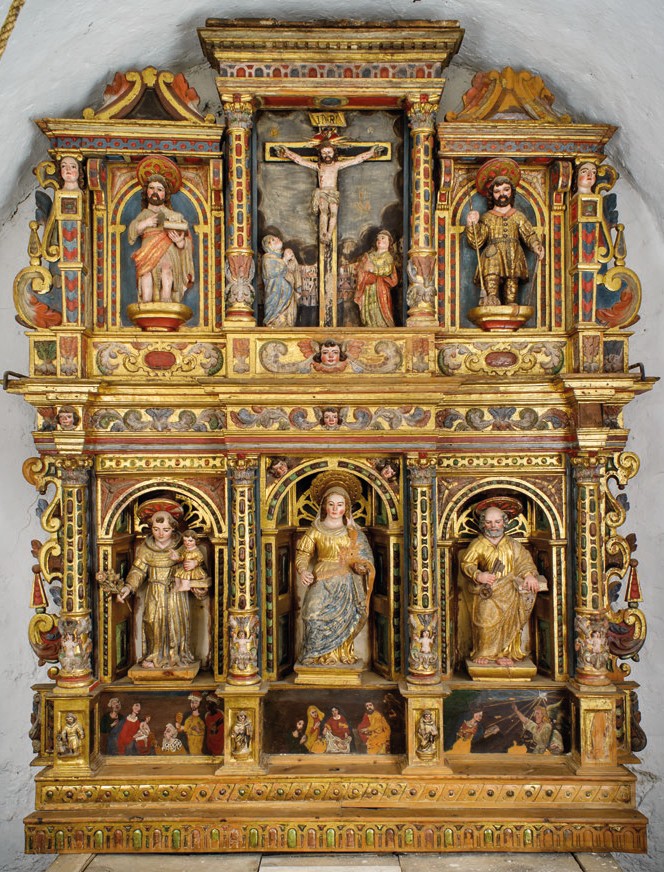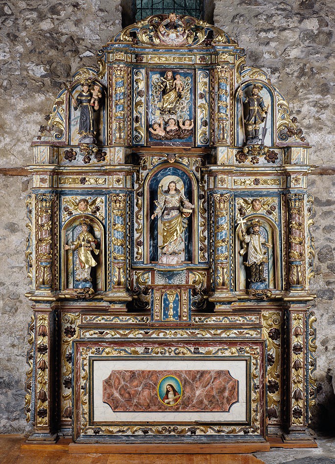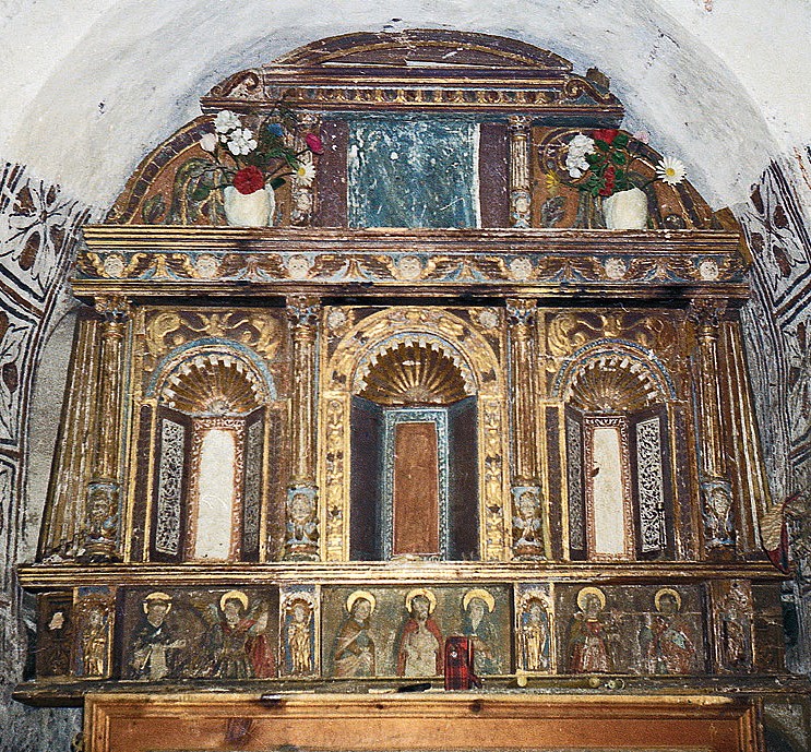 A főoltáron egy 1754-es fából faragott oltárkép állt. Eredetileg egy predellából, két szintből és egy három részre volt osztott felső részból állt. A felépítés azonban 1865-ben megváltozott, kibővítették, két neoklasszikus képi képet adtak hozzá, hogy keretezzék a keresztrefeszítés jelenetét. Ez az anonim szerzőségű oltárkép az egyik legmonumentálisabb Andorrában. A domborművek karaktereit dinamizmussal és jó arányokkal, nagy gondossággal készítették.