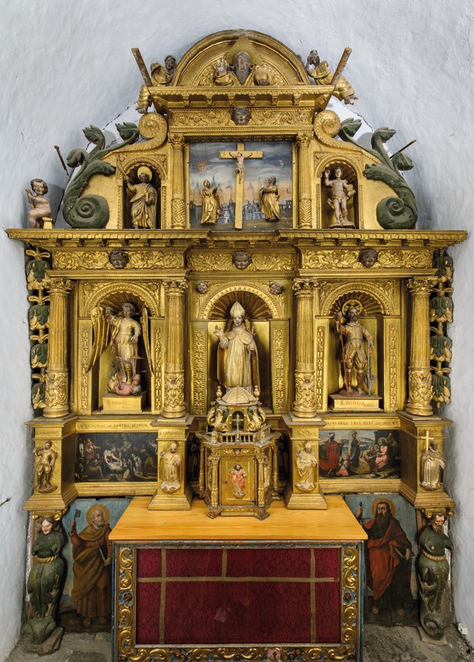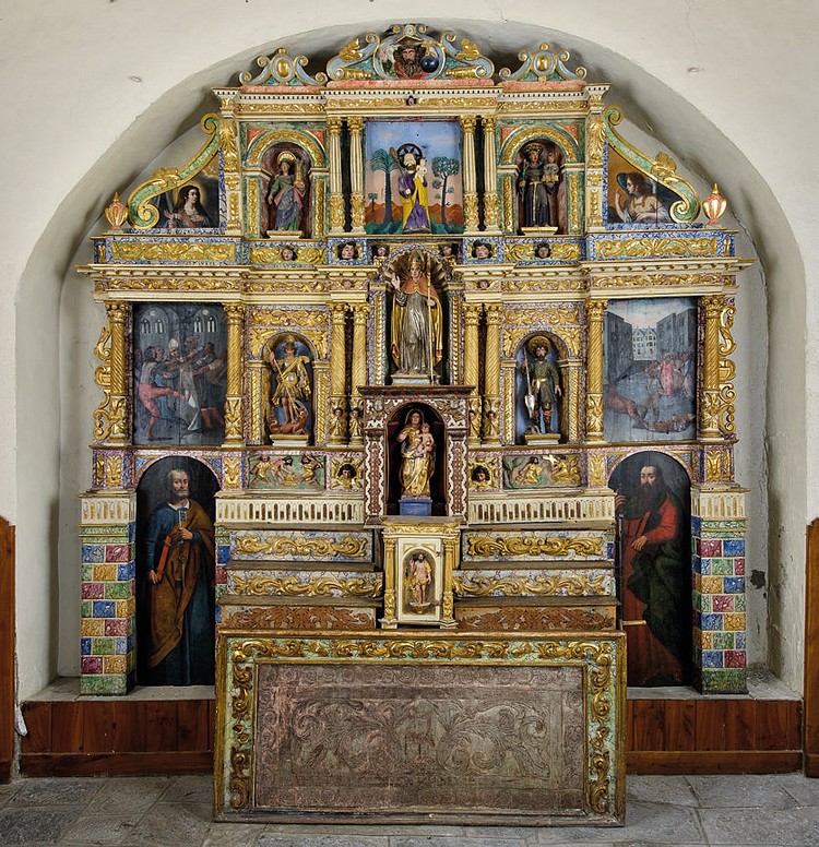 A templom főoltárának elkészítésére Andorra XVII. századi oltárfestészetének két legérdekesebb mesterét kérték fel. Az egyik az úgynevezett Ansalongai Mester, akit több főoltár szerzőjének tartanak Andorrában (Sant Miquel d’Ansalonga, Sant Pere d’Aixirivall, Sant Ermengol de l’Aldosa, Sant Esteve de Bixessarri, Sant Martí de la Cortinada, a canillói templom Sant Martí oltára, valamint Sant Germà oltára Sant Julià de Lóriában). A másik az a szobrász volt, aki akkoriban készítette az Escaldes-i főoltárt, egy tapasztalt és precíz oltárkészítő, és akinek három szép oltár-együttese maradt fenn Katalóniában.