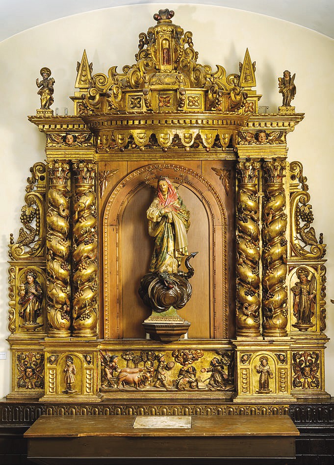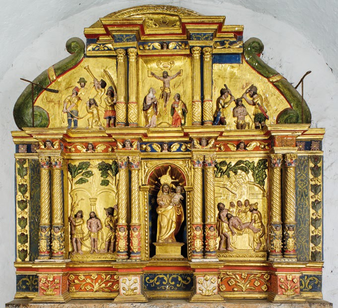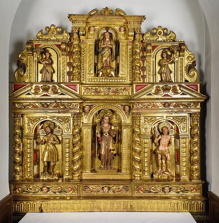 A régi templomból még egy retabló került át az új templomrészbe. A Santa Llúcia retabló szerkezete a jól megszokott felépítést követi. Két szinten három-három fülkéből áll, amelyeket csavaros oszlopok tagolnak, a részeket frízek és architrávok különítik el. A központi fülkében stilizált Santa Llúcia-szobor található, a mártírság pálmája és a kezében tartott szemek Szicíliai Santa Llúcia ikonográfiáját szimbolizálják, aki Diocletianus idejében szenvedett mártírhalált, amikor megtagadta a keresztény hit elhagyását. Ha figyelembe vesszük Santa Llúcia kultuszának népszerűségét, mint a szemgyógyászat megtestesítőjét, valamint nem kevésbé figyelemre méltó Szent Sebestyénét, a betegségekből való lelki gyógyítót, és Szent Izidórt, a parasztok védőszentjét, ez az oltár biztosan az egyik leggyakrabban látogatott volt a hívek körében. A retabló ikonográfiáját egy középen elhelyezett kisebb Mária-kép egészíti ki a második szinten, amely kisebb, mint a többi ábrázolt kép, és egyszerre két bőségszarut tartó figura keretezi.