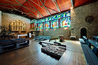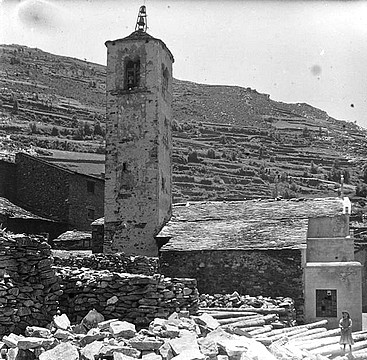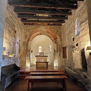 A templom egy egyszerű, tizedik századi román stílusú épület, egyhajós, kőfalakkal rendelkezik, lapos apszissal, teteje fa gerendákból és palatáblákból áll. Az bejárati ajtó fölött egy harang van. A templom Szent Fülöpnek és Szent Jakabnak van szentelve, a két szent ünnepe ugyanazon a napon van. Szent Jakabot az absztinensek tisztelték, mert a hagyomány szerint soha nem kóstolt egyetlen csepp bort sem. Az iszákosok viszont lenézték azért, mert olyan bunkó volt, hogy meghalt anélkül, hogy tudta volna az ivás örömét.