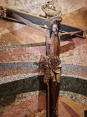 Az egyik mellékoltáron álló Szent Mártonnak szentelt retabló a XVII. század első évtizedeire datálható. Középen a szent szobra áll, alul a háromrészes predella közepén a szent a szegénnyel megosztja köpenyét. Egy másik mellékoltár feletti feszület Jézus Krisztus Legszentebb Vérének szentelve, a római Santa Maria sopra Minerva kórusi testvériséghez kapcsolódó áhítat.