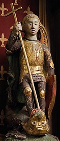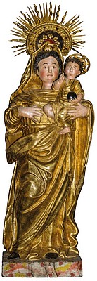A legkorábbi oltárkép a bejárathoz közeli kápolnában a Rózsafüzér Boldogasszony retablója, 1620-1621-ben készült, szobrásza Antoni Tremulles. A mű három sorban öt-öt részből áll, a felső két sor ívesen illeszkedik a kápolna boltívéhez. A felső sorban és a középső sor szélein a Kálvária egyes jelenetei vannak ábrázolva. A középső sorban a három fülke alakjai közül csak kettő maradt meg: Szent Barbara középen, mellette Szent Kelemen pápa (az azonsítás bizonytalan). Az alsó sorban a fülkékben Szent András, Szent Márk, Rózsafüzér Boldogasszony, Szent Domonkos és Penyaforti Szent Raymond (katalán domonkos szerzetes, a középkori kánonjog egyik legnagyobb szakértője volt) alakjai állnak. A predella jelenetei: Angyali üdvözlet), Krisztus születése, s Háromkirályok imádása, Krisztus feltámadása, Mennybemenetel.