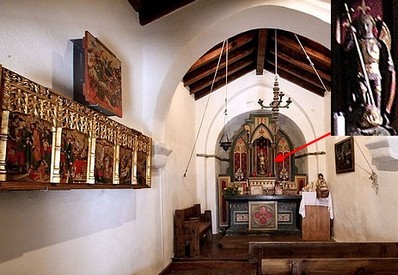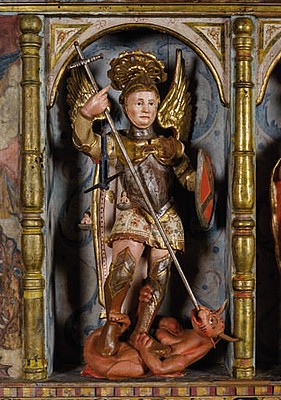 A templom a felsorolt románkori adottságokon túlmenően azért tarthat számot érdeklődésre, mert belül állt egyike az itteni völgyek legérdekesebb gótikus retablóinak, azaz oltáregyüttesének, amelyet a Canillo Mesterének tulajdonítottak korábban, de mint a Sant Joan de Caselles templom retablójának (ld. fentebb), úgy ennek a templomnak a retablójának mára ismertek a szerzői: Miquel Ramells és Guiot Borgonyó. Amikor 1926-ban elidegenítették és eladták a plébános és a püspökség engedélyével a műkereskedő Josep Bardoletnek (aki a Santa Coloma-i falfestményeket is megszerezte), később az eladott retablót Palma de Mallorcán fotózták 1939-ben. Napjainkban a Passió történeteit bemutató predella és a Gargano csodáját ábrázoló tábla a Crèdit Andorra bankhoz került, a Szent Mihály győzelme a lázadó angyalok felett című tábla pedig a kormány tulajdonában van, de sajnos a többi festményről semmit sem tudunk. Jelenleg csak a főoltár középső fülkéjében álló Szent Mihály szobra maradt eredeti helyén, a templomban a XX. században jellegtelen oltárképet helyeztek el, amely nem rendelkezik jelentős művészi értékkel. Középen egy kis fülkében azonban Szent Mihály arkangyal szobra áll. A templomban ma ki van állítva a predella és a két említett táblakép másolata.