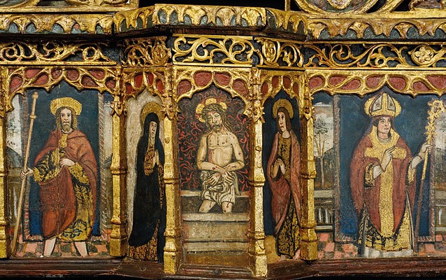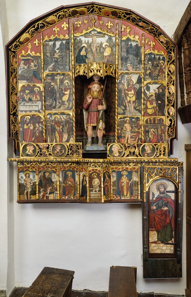 A templomban jobboldalt lett elhelyezve a XVI. századi retabló (oltárkép), amely eredetileg a szentély előtt volt, de áthelyezték, hogy ne takarja el a szentély freskóit. Az egyes képeken különböző jelenetek mesélnek Szent Kristóf életéről, valamint néhány csodájáról. Első pillantásra a főoltárkép nem tűnhet különösebben figyelemre méltónak, de ha alaposan megvizsgáljuk, felfedezhetjük az ikonográfiai különlegességét – a szent életéről szóló történet gazdagságát –, amely a korabeli festészet kontextusában különösen értékessé teszi, és egy további ékkövet jelent a templom belsejében őrzött festészeti palimpszesztben (azaz a XII. századi freskókra festett későbbi gótukus és reneszánsz falfestmények). Az oltárkép festője Joan de Monterde, aki egy releváns reneszánsz mesternek számít, Andorrában 1522 és 1540 között tevékenykedett, Miquel Ramells, Guiu Borgonyó mesterek kortársa volt. Többek között tudni lehet, hogy Meritxell templomának Szűz Mária oltárát ő készítette (ld. alább). A retabló emlékeztet a Sant Joan de Caselles és Sant Miquel de Prats templomok retablóira is, lehet, amelyeket Miquel Ramells (képek festése) és Guiu Borgonyó (aranyozás) szerzőpáros készített.